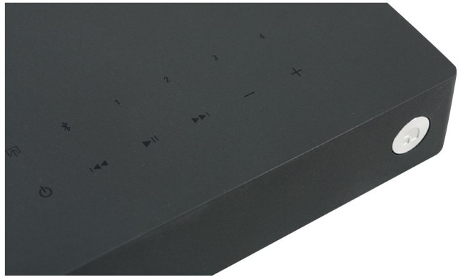 Cztery diody znajdujące się na przedniej ściance sygnalizują wybór konkretnego wejścia (trybu pracy). Na górze umieszczono panel dotykowy z aż dwunastoma "przyciskami" – sensorami.