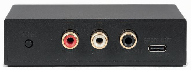Ledwo widoczne oznaczenia gniazd nie powinny być problemem, w tak prostych sprawach wystarczy minimum doświadczenia. Do dyspozycji jest tradycyjna para wyjść analogowych (RCA) oraz jedno wyjście cyfrowe (współosiowe).