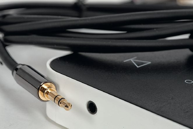 Znaczenia każdego z dwóch gniazd trzeba się domyślać (nie ma żadnych podpisów) lub sięgnąć po instrukcję obsługi. Okrągłe gniazdo o średnicy 3,5 mm to wyjście analogowe, które może również pełnić rolę wyjścia cyfrowego (optycznego) po zastosowaniu przewodu ze specjalną wtyczką albo przejściówki zakończonej najbardziej typowym gniazdem optycznym.