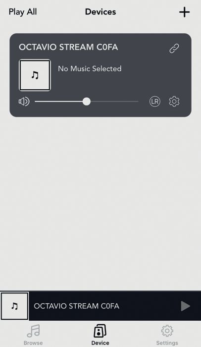 Pierwsze uruchomienie urządzenia jest szybkie i jak najbardziej typowe, zaczynamy od zainstalowania aplikacji mobilnej "Octavio", która pełni oczywiście rolę sterownika, przeprowadzi aktualizację oprogramowania, pozwoli wybrać źródło (sieć lub BT).