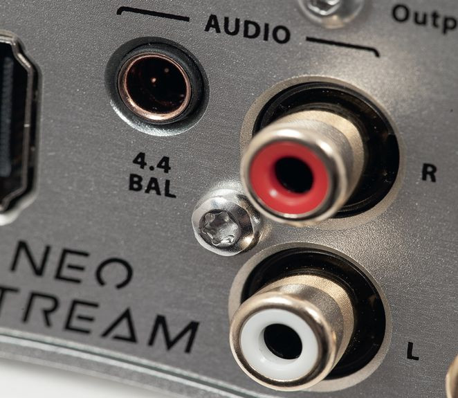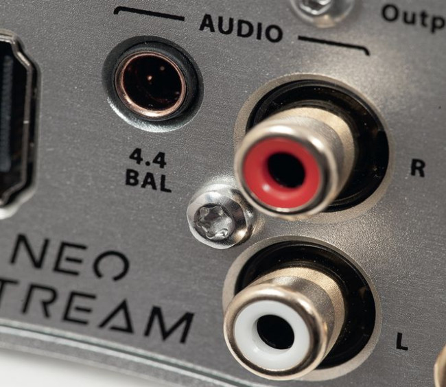 Kojarzymy je głównie ze słuchawkami, w Neo Stream służy do podłączenia wzmacniacza przez specjalny przewód – przejściówkę z końcówkami XLR (trzeba jednak taki dokupić).