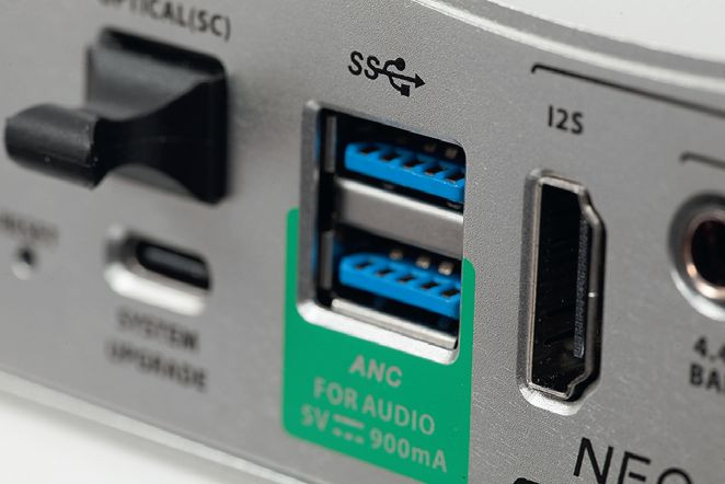 Jest aż pięć wyjść cyfrowych – od AES/EBU przez optyczne, współosiowe, I2S aż po USB (w formule USB-DAC, dla zewnętrznego przetwornika). Jest też drugie złącze USB, już dla dysku twardego.
