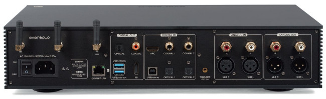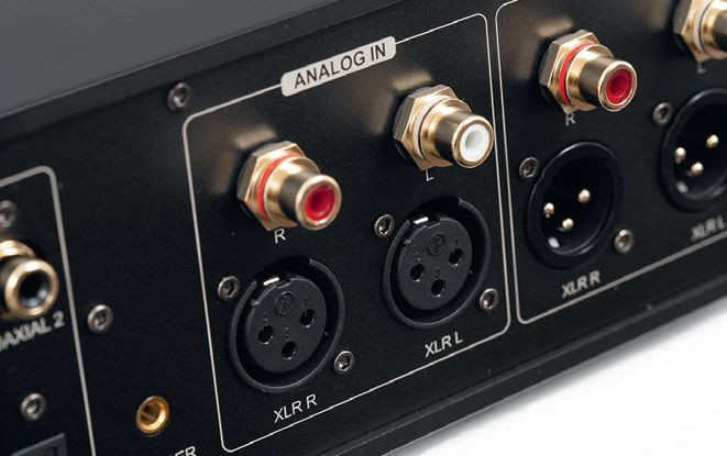 Wśród wyjść cyfrowych są optyczne, współosiowe oraz I2S. Nie mniej imponująca jest sekcja gniazd analogowych, będąca zapowiedzą fajerwerków wewnątrz. Oprócz wyjść XLR i RCA jest też para wejść.
