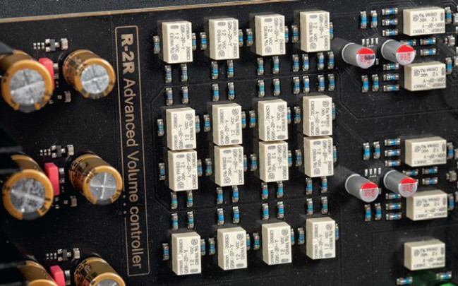Sekcja analogowego, symetrycznego przedwzmacniacza obsługuje sygnał nie tylko z wewnętrznego przetwornika, ale też podany z zewnątrz. Analogowa regulacja głośności ma pewną przewagę nad regulacją cyfrową, ponieważ rozdzielczość sygnału nie jest w niej redukowana). W dodatku jest ona przygotowana bardzo ambitnie - precyzyjne rezystory są włączane w tor sygnałowy przekaźnikami. Układ działa w krokach półdecybelowych.