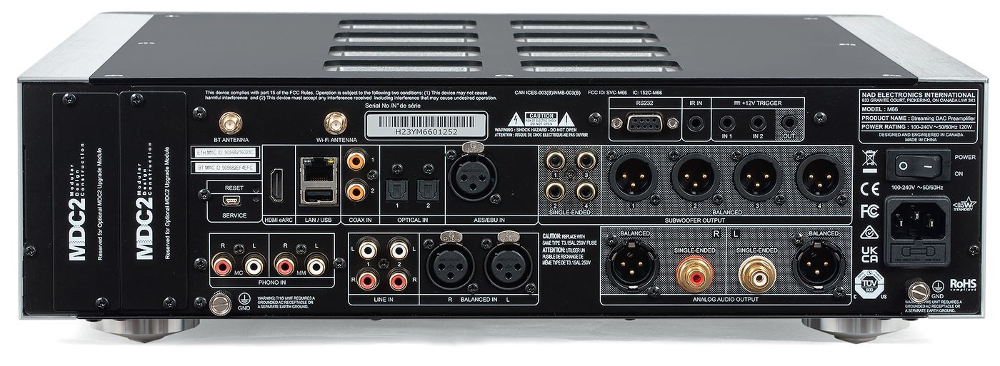 W wielu swoich urządzeniach NAD przygotowuje sloty dla kart rozszerzeń w firmowym systemie MDC2. NAD M66 ma dwa takie, chociaż nie wiem, jak obydwa wykorzystać, bo prawie wszystkie funkcje "karciane" są tutaj już zintegrowane; poza jedną – wejściem USB-DAC.