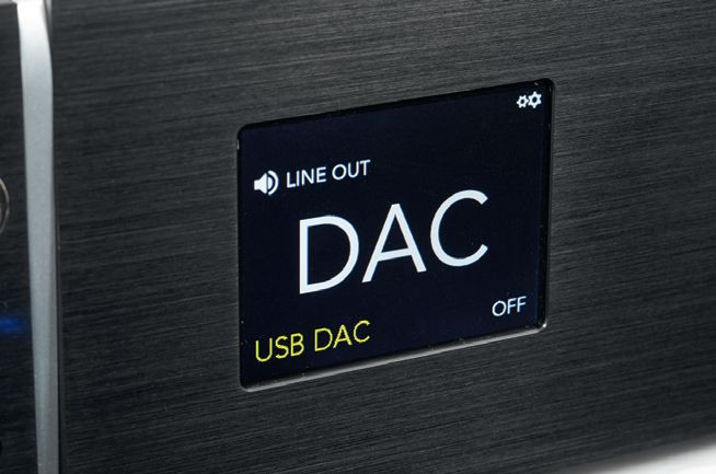 3,5-calowy kolorowy wyświetlacz nie jest dotykowy, ale bardzo wygodną obsługę zapewnia wielofunkcyjne pokrętło, a niezależnie – aplikacje mobilne (od odtwarzacza lub serwisów strumieniowych). Wyświetlacz prezentuje (oprócz menu) także standardowe informacje, parametry sygnału, wejście, konfi gurację filtrów.