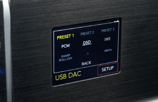 Jest to w sumie, jak policzył sam producent, blisko pięćdziesiąt wariantów, z których większość ma bezpośrednie obicie w możliwościach samego układu DAC. Są nawet trzy banki pamięci (tzw. presety), w każdym z nich można zapisać określoną kombinację ustawień (poszczególnych parametrów) i później łatwo je wywoływać.