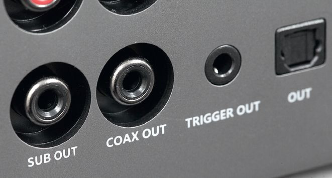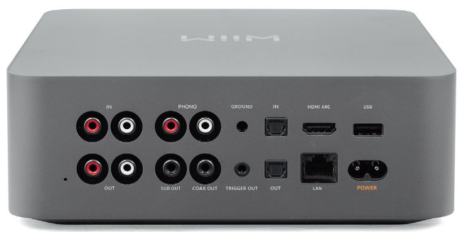 Gniazdo USB może pełnić – w zależności od ustawień – dwie funkcje: wyjścia sygnałów cyfrowych dla zewnętrznego przetwornika C/A lub może obsługiwać nośniki pamięci z muzyką. Jak przekonuje WiiM, z tym drugim wariantem wiąże się unikalna umiejętność nagrywania sygnałów z wejść analogowych na nośniki pamięci. Są także dwa cyfrowe wyjścia – optyczne oraz współosiowe. W niektórych instalacjach przyda się złącze wyzwalacza 12 V.
