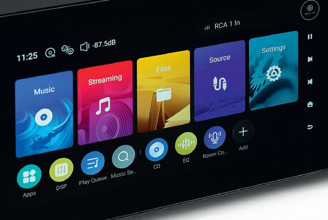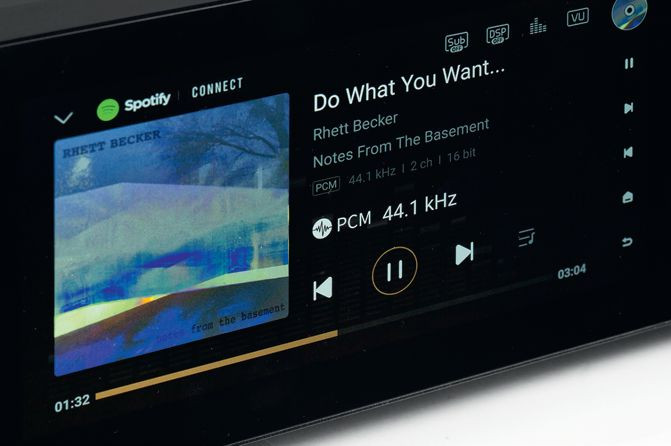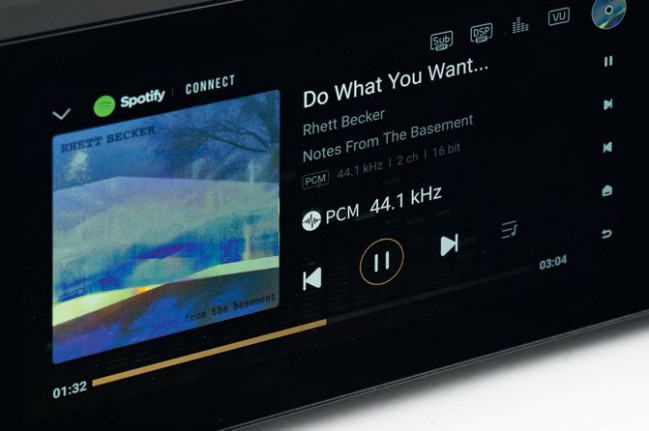 Wyświetlacz o przekątnej 6,5 cala jest jednym z największych spotykanych w urządzeniach audio, matryca jest kolorowa, dotykowa. Jest jeszcze druga, mniejsza, ale też wyjątkowa, bowiem zatopiona w pokrętle głośności.