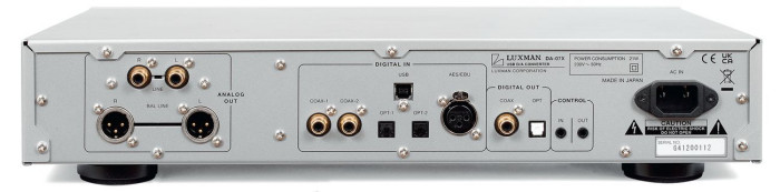 Mniejsze znaczenie mają cyfrowe wyjścia, jedno S/PDIF i jedno optyczne. Luxman DA-07X nie ma regulacji głośności, ale jest taka w NT-07. W konsekwencji nie ma jednak wyjścia słuchawkowego, które nie mogłoby funkcjonować bez regulacji w samym DA-07X.