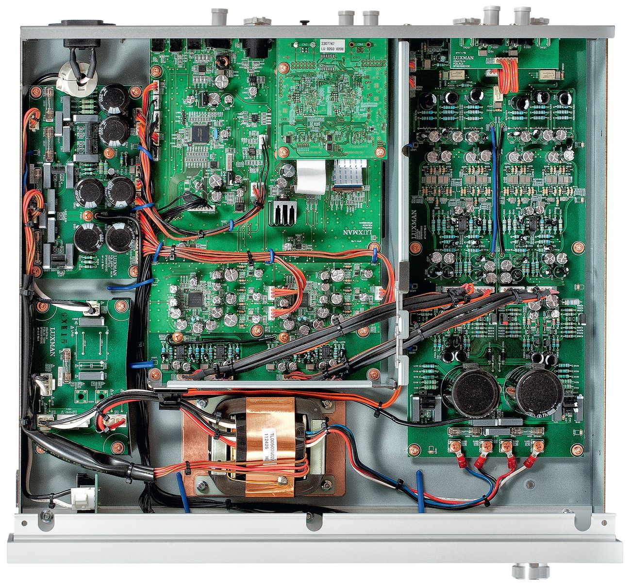 Wszystkie układy są zasilane, jak to nazywa sam Luxman, z "tradycyjnego" liniowego zasilacza z rozbudowanymi stabilizatorami napięcia. W sumie DA-07X ma trzy rdzeniowe transformatory.