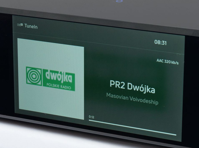 To już nie jest skromna, ciemnoszara skrzyneczka, to streamer nie tylko nowoczesny, ale i efektowny, z dużym 5-calowym, kolorowym wyświetlaczem. Prezentuje grafiki z okładkami płyt, uzupełnione informacjami tekstowymi, związanymi przede wszystkim z muzyką, a nie z technicznymi aspektami strumieniowania.
