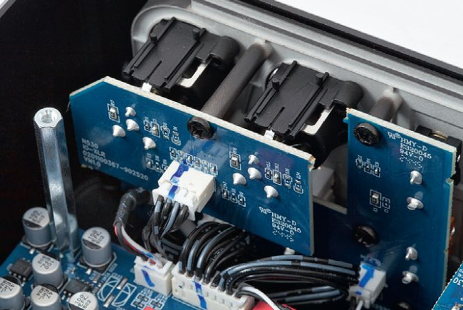 Wyjścia analogowe są w standardzie RCA oraz XLR (a na życzenie z regulacją głośności), niezależnie przygotowano gniazdo dla subwoofera (można tutaj ustawić częstotliwość odcięcia). W sekcji wyjść cyfrowych, oprócz optycznego i współosiowego, jest USB dla zewnętrznego przetwornika DAC.