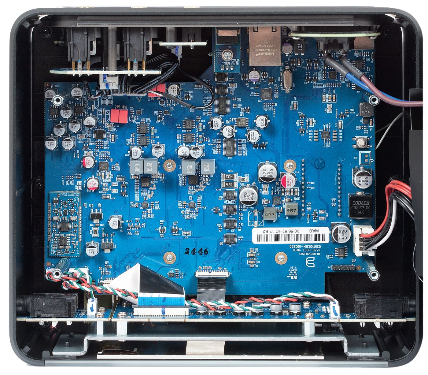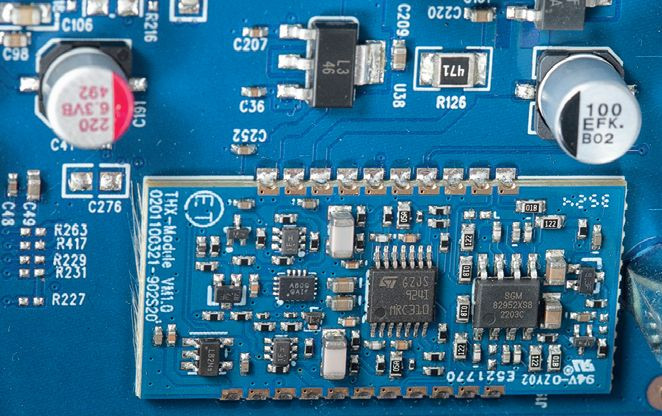 Wyjścia słuchawkowe są obsługiwane przez układy THX AAA występujące w drogich, samodzielnych wzmacniaczach słuchawkowych. Niespodzianki w sekcji przetworników C/A nie ma, Bluesound bierze to, co (prawie) najlepsze, czyli scalaki ESS Technology ES9039Q2M, po jednym na kanał. Każdy jest stereofoniczny, potrafi przyjąć sygnały PCM 32 bit/768 kHz oraz DSD1024, a jego dynamika sięga 130 dB.