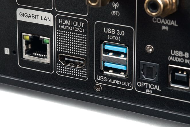 Widać je na tylnej ściance; Gen 2 ma już HDMI z kanałem zwrotnym ARC, jest też niezależne wyjście HDMI, także dla sygnałów audio; tędy DMP-A6 Gen 2 wyśle na zewnątrz najbardziej gęste dane, w tym DSD. Trzeba też wspomnieć o możliwości dekodowania materiałów wielokanałowych (Dolby Digital) i wysyłania ich do surroundowej odnogi systemu.