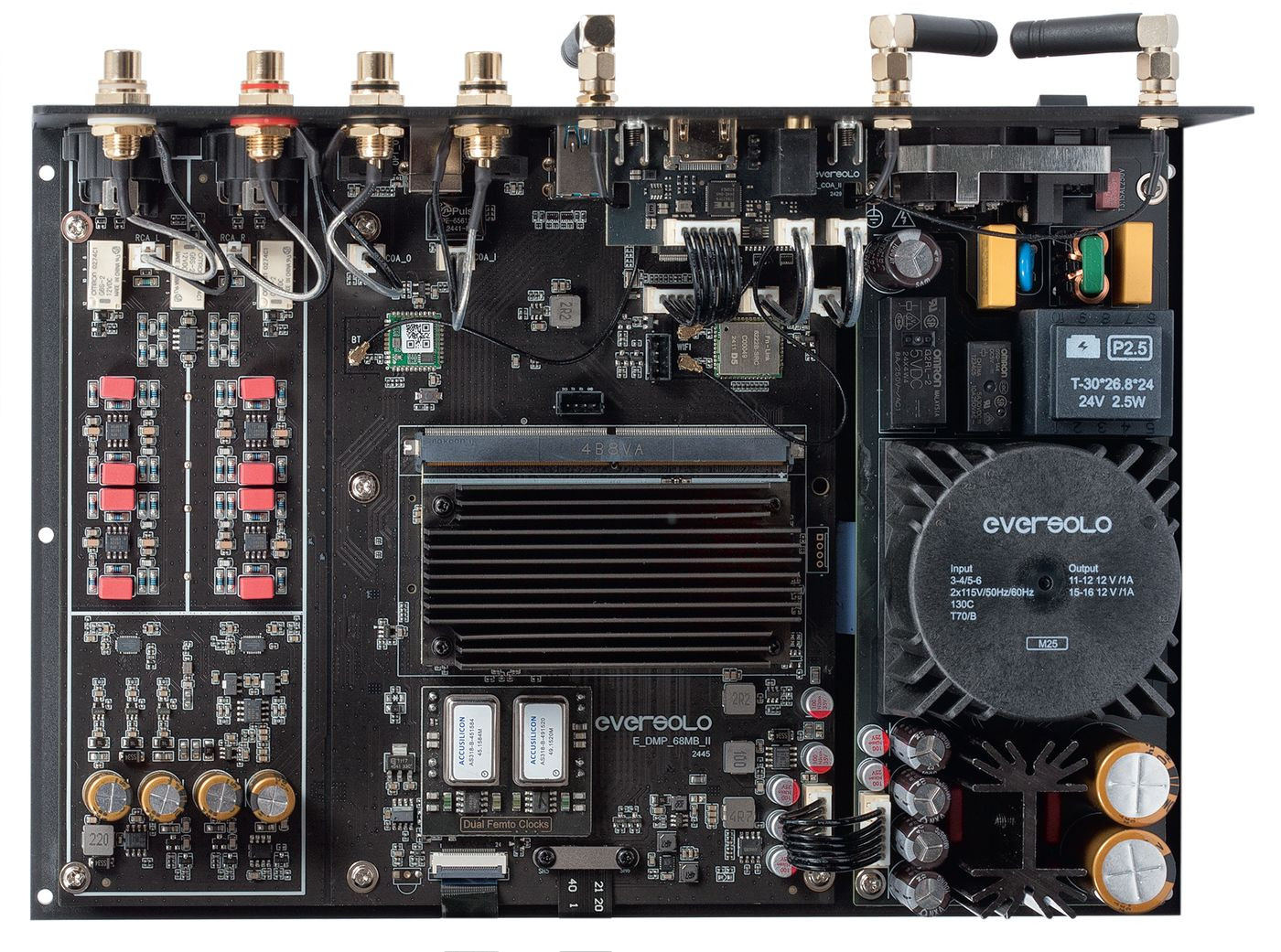 Operacje odbywają się pod nadzorem czterordzeniowego procesora ARM Cortex A55. Nie chodzi tylko o przetwarzanie audio, ale całą obsługę związaną z systemem Android, wyświetlaczem, uruchamianiem poszczególnych usług. Jest też tutaj własny "straganik" z aplikacjami EverSolo, dopasowany do firmowych streamerów.