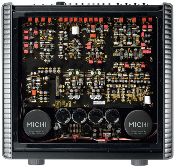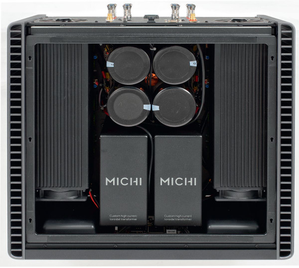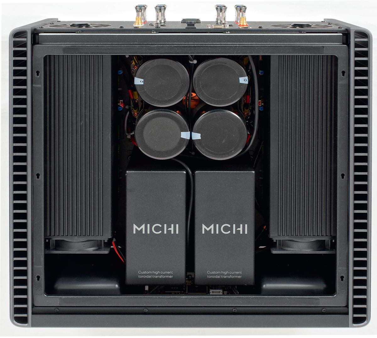 Michi stawia na bezkompromisową formę wzmacniacza mocy w klasie AB o potencjale, który pozwoli "napędzić" każde kolumny. Deklarowana przez producenta moc wyjściowa to 500 W przy 8 Ω, co robi ogromne wrażenie, nawet jeśli nie przełoży się na praktyczne zastosowanie.