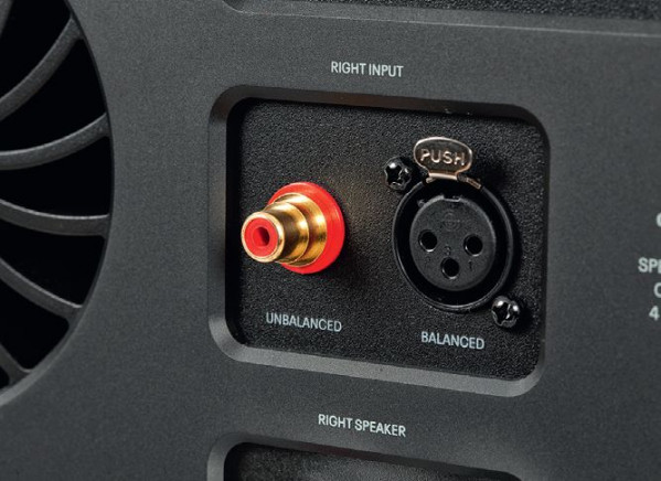 Na tylnej ściance S5, bardziej niż same gniazda przyłączeniowe zwracają uwagę dwa duże "śmigła" - okrągłe kratki wentylacyjne; wzmacniacz nie ma zewnętrznych radiatorów, a wysoka moc w klasie AB wymaga chłodzenia.
