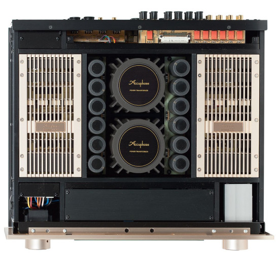Wnętrze Accuphase C-3900 przypomina bardziej integrę niż przedwzmacniacz, nie tylko z powodu rozbudowanego układu, ale też metalowych osłon przypominających radiatory, umieszczone symetrycznie z prawej i lewej strony.
