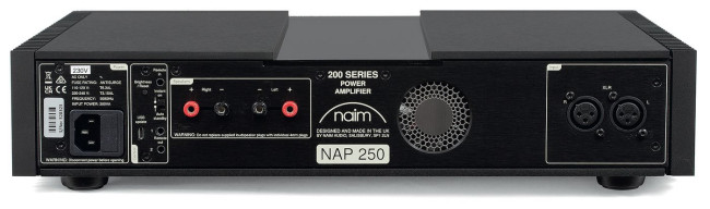Umieszczone po bokach radiatory zdają się we wzmacniaczu pełnić oczywistą rolę… tym bardziej, że wzmacniacz pracuje w tradycyjnej klasie AB, ale kiedy zajrzymy do wnętrza, będziemy wiedzieć na ten temat więcej. Pomimo dość oczywistej funkcjonalności (NAP 250 to "zwykła" końcówka mocy), z tyłu pojawia się kilka ciekawostek.