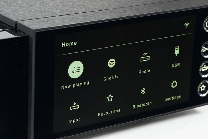 Prawa strona to domena odtwarzacza strumieniowego i służącego przede wszystkim jemu kolorowego wyświetlacza, chociaż z jego pomocą obsługujemy także funkcje związane z przedwzmacniaczem analogowym, np. wybór wejść.