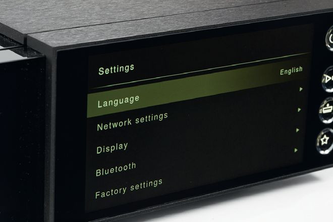 Wyświetlacz prezentuje okładki płyt, nazwy, tytuły utworów. Obok niego umieszczono cztery przyciski – wyboru źródła, sterowania odtwarzaniem, szybkiego dostępu do ulubionych treści (których należy uprzednio nauczyć urządzenie).