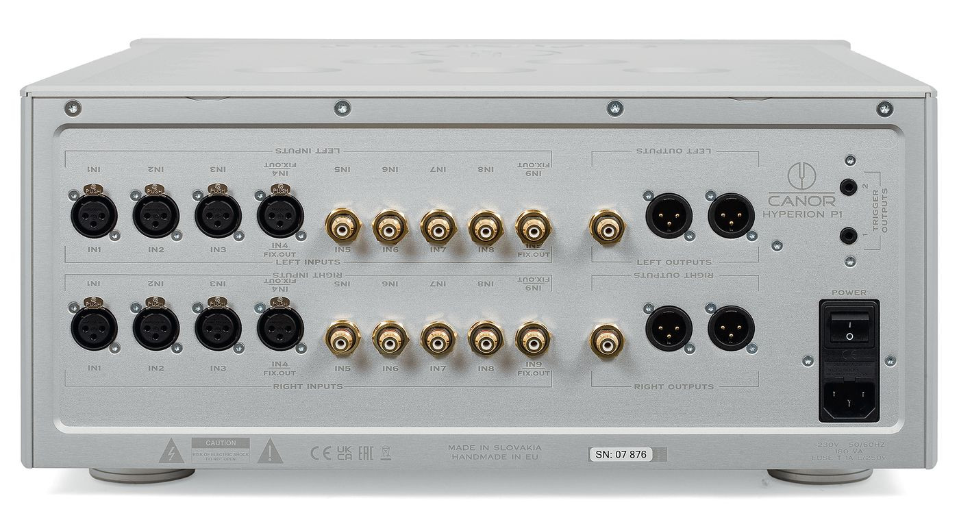 Canor Hyperion P1 jest urządzeniem całkowicie analogowym, nie dostarczymy tutaj żadnych sygnałów cyfrowych (ale Canor ma do takich zadań przetwornik C/A), nie obsłużymy też bezpośrednio gramofonu (nie ma wejścia phono, ale i tutaj z pomocą może przyjść zewnętrzne urządzenie Canora).