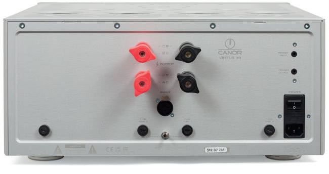 Canor Virtus M1 wielkością i formą przypomina P1, ale waży jeszcze więcej – 40 kg. To monofoniczna końcówka mocy, więc w systemie konieczne są dwie. Canor nie proponuje jej stereofonicznej wersji, bezkompromisowe podejście do referencyjnego systemu jest ewidentne zarówno w jego ogólnym schemacie, jak i w każdym detalu.