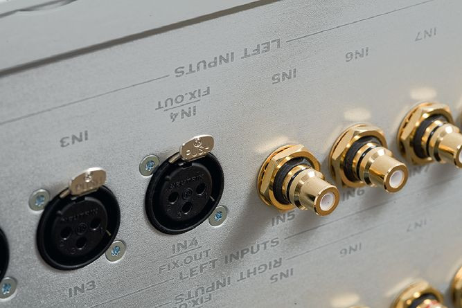 Oprócz czterech "regularnych" par wejść liniowych RCA i trzech XLR, są jeszcze wejścia (po jednej parze RCA i XLR) pomijające regulację głośności (to tzw. tryb A/V). Wśród wyjść proporcje są inne – tylko jedno RCA i dwa XLR.