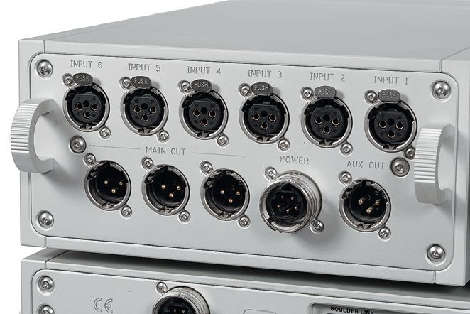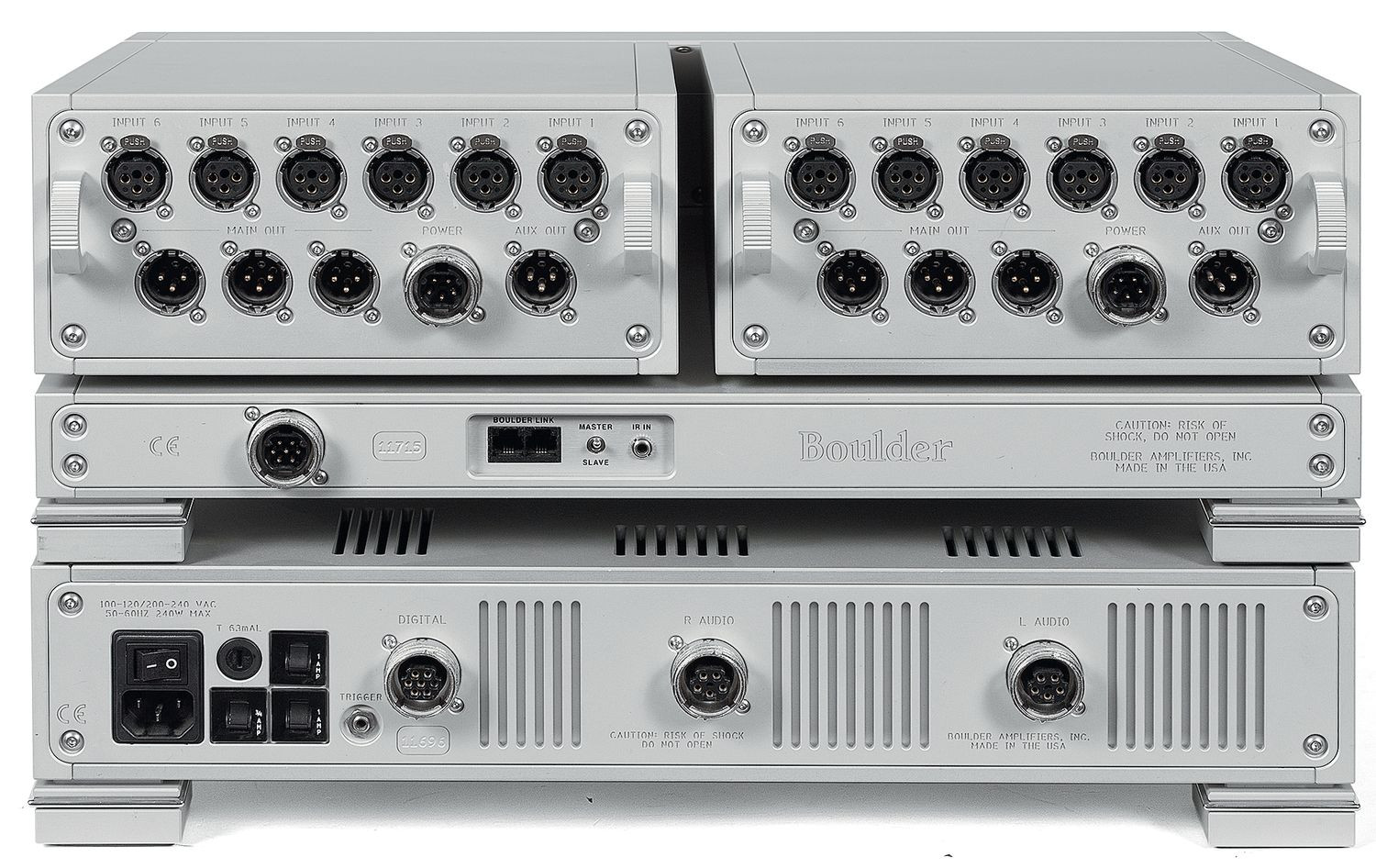 Sygnały z gniazd wejściowych trafiają do hermetycznych przekaźników ze srebrnymi stykami. Wzmocnienie prowadzi sześć (na każdy kanał) modułów o oznaczeniach 993S; zastosowano w nich wyłącznie elementy dyskretne (tranzystory bipolarne, które Boulder uważa za lepsze od FET-ów).