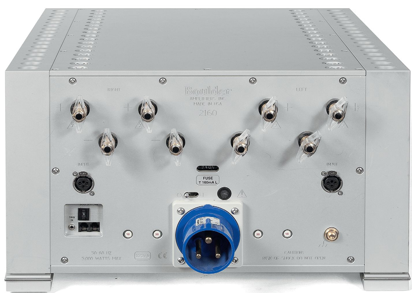Boulder 2160 ma tylko jedno wejście (na każdy kanał) i jest to oczywiście gniazdo XLR. Wyjścia głośnikowe są podwójne, z potężnymi nakrętkami motylkowymi. Do komunikacji między urządzeniami Bouldera służy firmowy system Boulder Link, jego elementy (gniazda, przyciski) zostały umieszczone w niewielkim "okienku" w tylnej ściance.