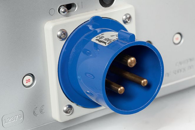 Złącze w 2160 jest jednofazowe, ale maksymalna moc, jaką 2160 pobiera z sieci, sięga 5000 W, a to oznacza, że gniazdo (i wszystkie elementy połączeniowe) powinny wytrzymać natężenie 22 A. Zastosowane gniazdo przyjmie aż 32 A, co może wydawać się przesadą, ale lepszy zapas niż deficyt; standardowe złącza C19/C20 wytrzymują "tylko" 20 A.
