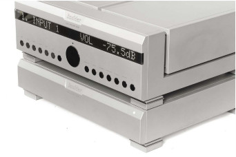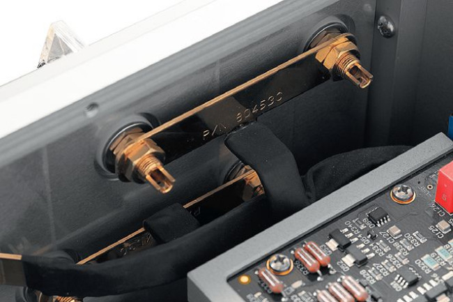 Ale główny zasilacz też dzieli się na dwa – niezależne dla każdego kanału. Aby zredukować negatywny wpływ transformatorów na układy audio, zamknięto je w metalowym kołnierzu (wypełnionym masą tłumiącą), który szczelnie zaspawano. Transformatorowa "tuba" waży 30 kg. Cała ścieżka sygnału jest zbalansowana.