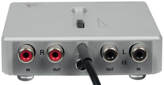 Przewód zasilający (łączący zasilacz z preampem) został zamontowany na stałe, tuż nad nakrętką masową, co nieco utrudnia dokręcanie biegnącej z gramofonu żyły (najlepiej posłużyć się dużym, płaskim śrubokrętem).