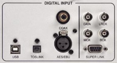 Występuje też wejście zbalansowane AES/EBU (XLR), 24/192 oraz wejście optyczne TOSLINK. To ostatnie, co jest dla mnie absolutnym zaskoczeniem, także ma przyjmować sygnał do 24/192. No i mamy wreszcie łącze Superlink i to z dwoma sposobami połączenia.