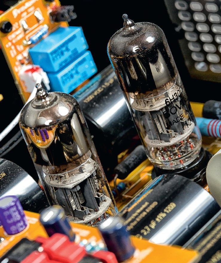 Równie pięknie jest na płytce analogowej. Tłumienie sygnału wprawdzie jest jeszcze całkiem zwyczajnie - w drabinkach rezystorowych PGA2320 Burr Brown - jednak już układy lampowe to kumulacja wiedzy Gerharda z ostatnich dziesięciu lat. Oparte są na lampach 6H30 - po dwie na kanał, w układzie zbalansowanym, pracujących w klasie A, bez sprzężenia zwrotnego.