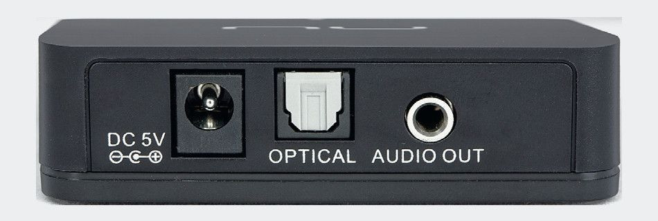 Mimo niewielkich rozmiarów NuForce BTR-100 został całkiem dobrze wyposażony, zasilacz to oczywiście osobna, ścienna kostka, ale co najważniejsze, sygnał możemy wyprowadzić w formie analogowej za pomocą gniazda mini-jack oraz cyfrowej, w tym celu przygotowano wyjście optyczne.