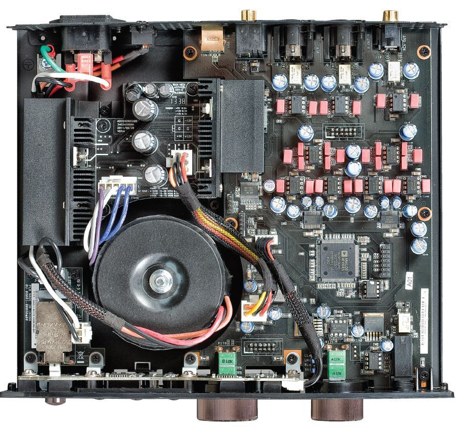 Sekcja analogowa została na tylnej ściance symbolicznie oddzielona od cyfrowej przerywaną linią; podział ten sięga jednak znacznie głębiej, bowiem układ zmontowano na czterowarstwowej płytce drukowanej, na której całkowicie odseparowano cyfrę i analog, nie tylko drogę sygnału, ale i masę.