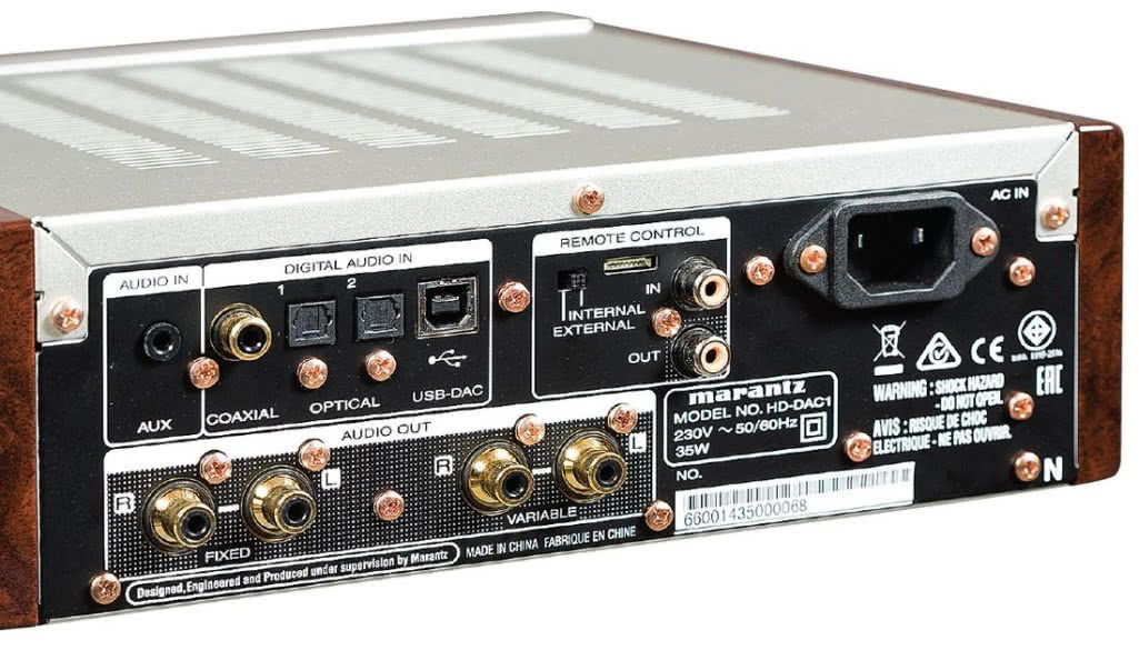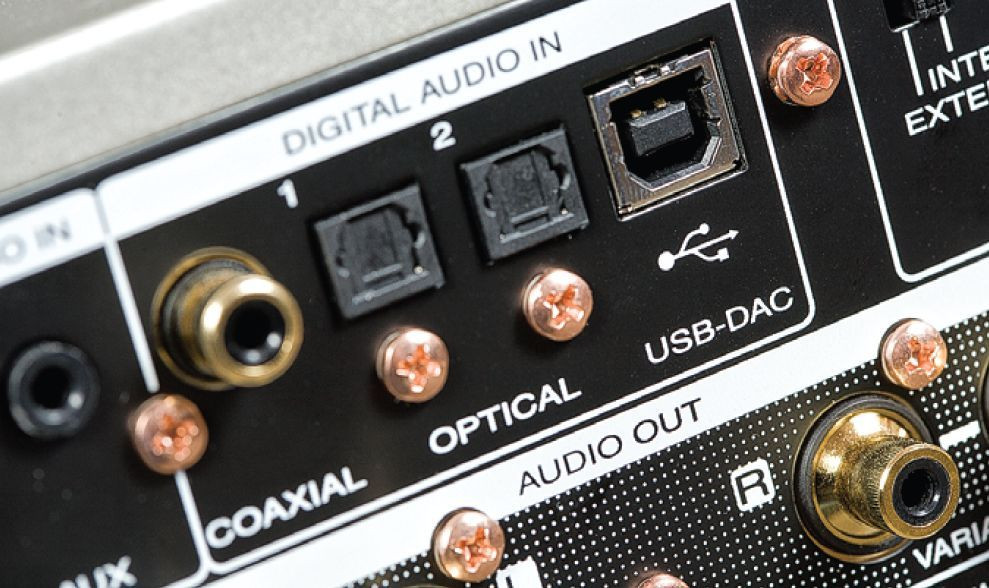 Marantz -HD-DAC 1 ma również wejścia optyczne (2) i elektryczne współosiowe, a jako jedyny w tym teście proponuje także wejście analogowe (wprawdzie z gniazdem mini-jack), można więc traktować go jako prosty przedwzmacniacz. W panelu wyjść są dostępne dwie parki RCA - jedna ze stałym, druga z regulowanym poziomem sygnału.