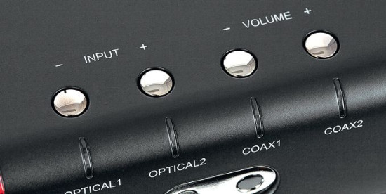 Wejścia przełączamy dwoma przyciskami. Poziom analogowego sygnału wyjściowego (na jednej z dwóch par RCA) jest regulowany za pomocą kolejnej pary przycisków, bez wskaźnika wybranej pozycji.