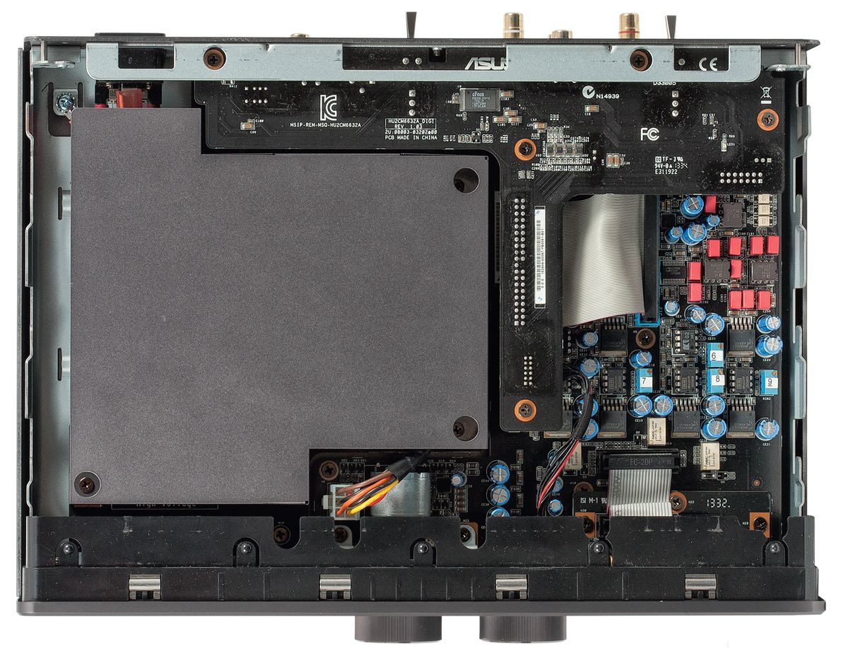 Najciekawsze są układy C/A, które wykonano separując obwody dla poszczególnych kanałów, a każdy ma do dyspozycji dwukanałową kość Analog Devices AD1955. Tym samym, już na etapie cyfrowym można przygotować sygnał zbalansowany. AD1955 pracuje z sygnałami PCM 24 bit/192 kHz oraz DSD w wersjach DSD64 i DSD128, co odpowiada specyfikacji Asusa Essence III.