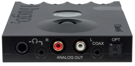 Obudowa jest niewielka, mimo to udało się zmieścić gniazda RCA, co ułatwia podłączenie Hugo 2 w domowym systemie. Specjalne wejście współosiowe wykorzystuje trzy żyły złącza mini-jack i przyjmuje w ten sposób dwa równoległe strumienie danych PCM 24/384 - tak, aby przesłać sygnał PCM 24/768.