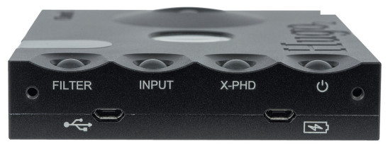 Do obsługi służą cztery przyciski oraz sferyczny manipulator - "kula" regulacja głośności (zarówno dla wyjść słuchawkowych, jak i RCA). Jest tutaj sekwencyjny przełącznik wejść, wybór kilku trybów filtrowania i obsługa układu X-PHD, zadaniem którego jest kreowanie przestrzeni i naturalnej panoramy stereo w przypadku słuchawek.