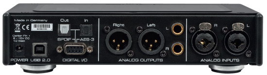 Czytelnie rozdzielono trzy sekcje: cyfrową, wejść analogowych i wyjść analogowych, choć nie wszystkie zastosowane gniazda wydadzą się audiofilowi znajome. Port USB pełni rolę nie tylko wejścia, ale także wyjścia; w ten sposób sygnał ze źródła analogowego nagramy na dysk komputera.
