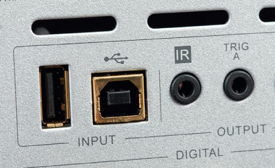 W tym też celu M-DAC+ został świetnie wyposażony w gniazda przyłączeniowe. Sygnały cyfrowe można doprowadzić do dwóch wejść współosiowych, dwóch optycznych, a do tego - jednego AES/EBU. W każdym przypadku mówimy o danych PCM 24 bit/192 kHz (dla wejść optycznych warto ograniczyć się do 96 kHz). USB (typ-B) ma już wyraźnie większy potencjał - PCM 32 bit/384 kHz oraz DSD256. Drugie z gniazd USB (typ-A) zaprojektowano pod kątem urządzeń Apple, M-DAC+ ma zresztą stosowny certyfikat (Made for iPhone).