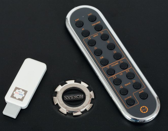 Bezprzewodowy system K-Link wymaga użycia specjalnego nadajnika, może nim być znajdująca się na wyposażeniu karta - pendrajw USB - który podłączamy do komputera.Roksan zadbał także o uniwersalny pilot, choć oprócz przełączania wejść, K3 DAC nie ma innych funkcji.