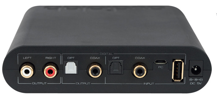 Oprócz zestawu wejść cyfrowych są cyfrowe wyjścia, wbudowany wzmacniacz słuchawkowy, podstawowy przedwzmacniacz (regulacja głośności), a do tego jeszcze bezprzewodowy odbiornik Bluetooth.