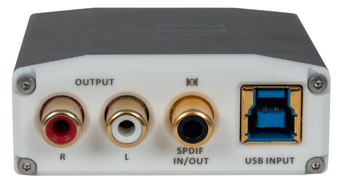 iFi Audio lubi stosować nietypowe (w przetwornikach DAC) złącza USB-B w odmianie v3.0. Teoretycznie zapewniają one większą przepustowość względem najbardziej popularnego standardu v2.0, chociaż ten ostatni w pełni zaspokoi potrzeby sygnałów audio (nawet o najwyższych parametrach). To główne wejście audio, a jednocześnie równolegle gniazdo zasilające.