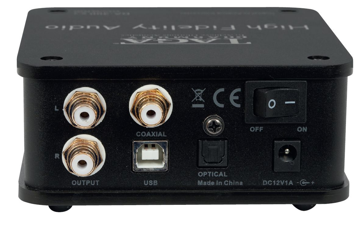 Konstrukcja mechaniczna Tagi Harmony DA-300 v.3 jest solidna, z aluminiową obudową. Z przodu znajduje się tylko jeden przycisk (selektor wejść) oraz diodowy wskaźnik. Włącznik zasilania trafi ł na tylny panel. Para RCA (o stałym poziomie napięcia) to oczywiście droga, jaką wyjdą sygnały analogowe, a cyfrowe wejdą przez trzy wejścia: USB, współosiowe, optyczne.