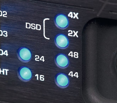 Z tych rachunków możemy już wywnioskować, jaki jest potencjał dla sygnału PCM – 24 bit/192 kHz. DAC3 HGC obsługuje również sygnały DSD (tylko DSD64), co jest sygnalizowane jednoczesnym włączeniem obydwu diod "krotności".
